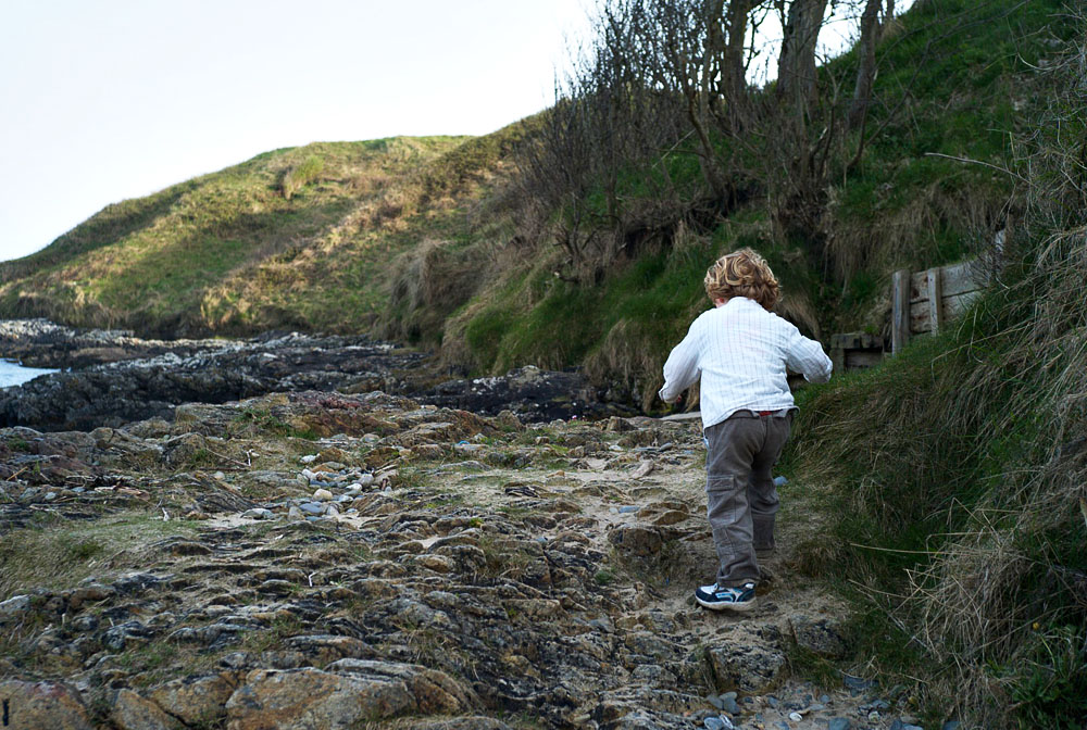A child ascends from a beach in near Wicklow town, Co. Wicklow Ireland to the top of the cliff. Photograph Sean Dwyer