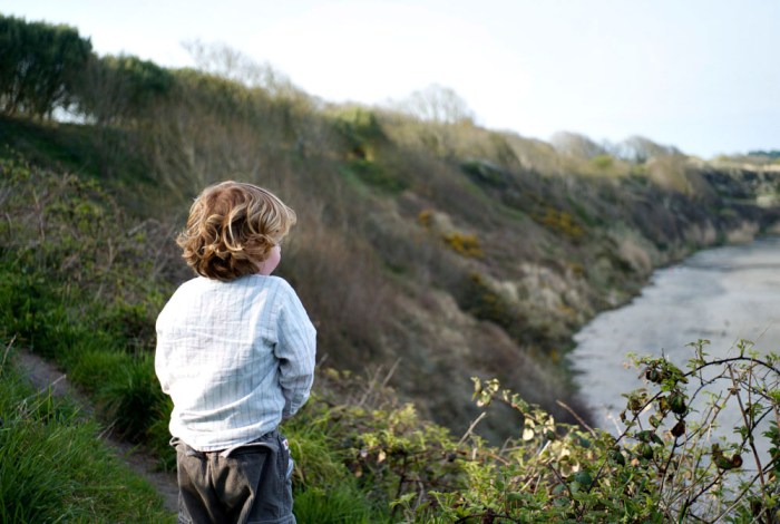 A child ascends from a beach in near Wicklow town, Co. Wicklow Ireland to the top of the cliff. Photograph Sean Dwyer