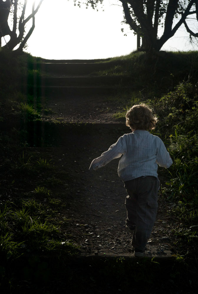 A child ascends from a beach in near Wicklow town, Co. Wicklow Ireland to the top of the cliff. Photograph Sean Dwyer
